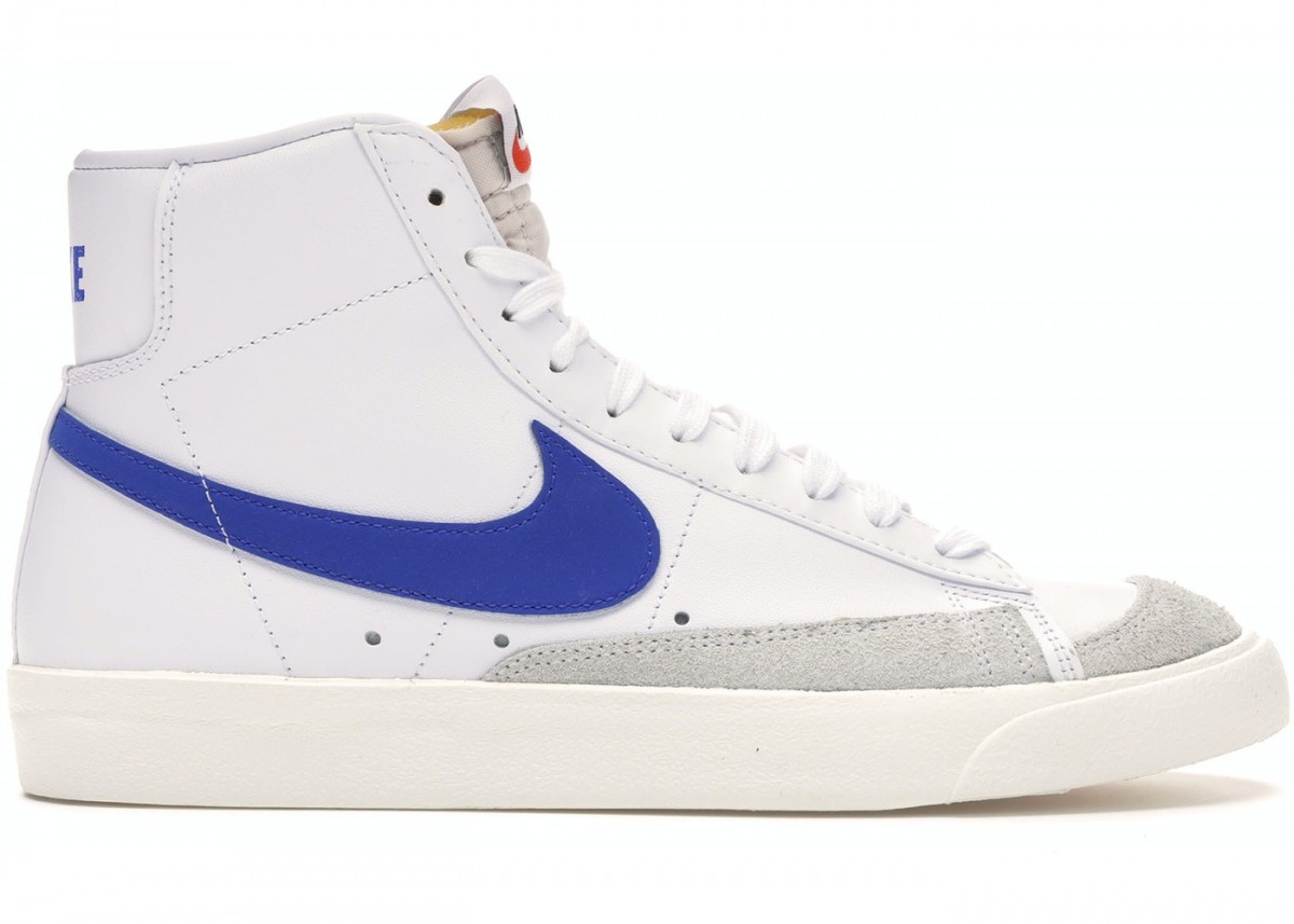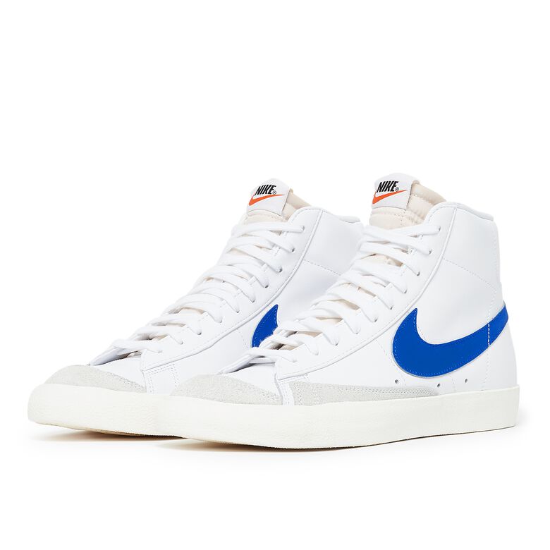 Nike Blazer Mid ’77 al estilo vintage de color blanco con el logo Nike azul.